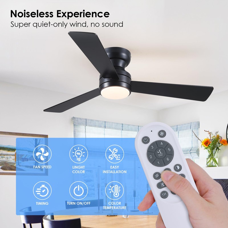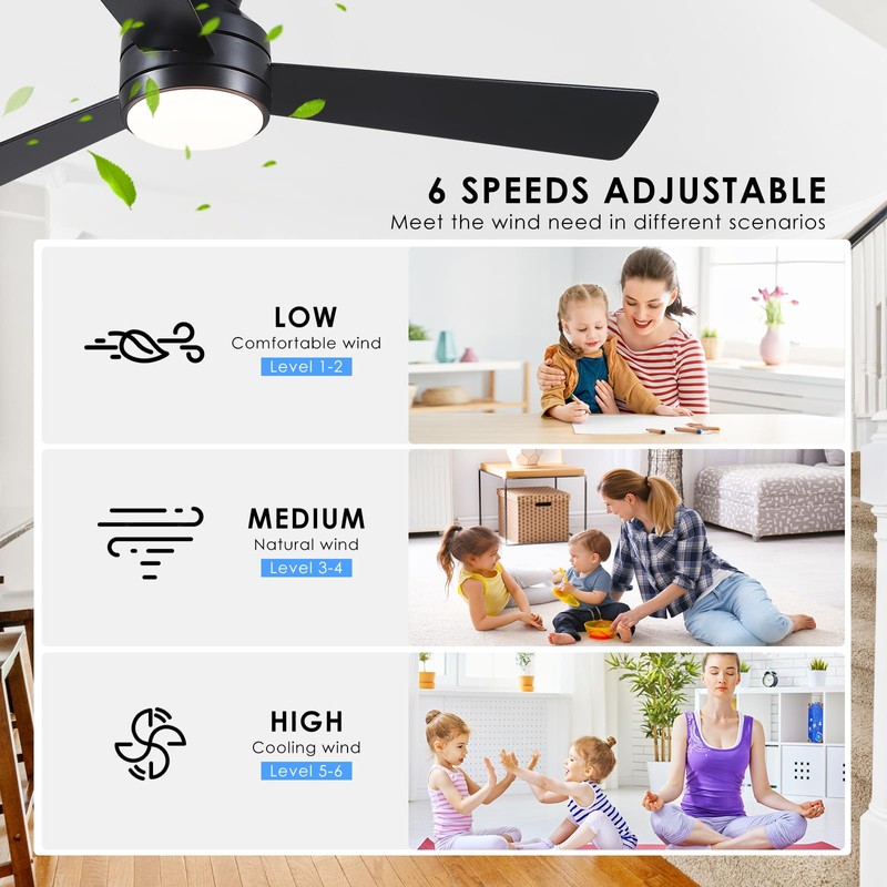 - 【Ceiling Fans with Remote】: Asyko modern ceiling fan, with double-sided fan blade design and a black ABS body, All operations can be controlled by the remote controller, adjust the fan speed with 6 levels, select light color temperature, and supports timing (1/2 hour). The fan and light can be turned on separately. (Tips: After fixed, the remote control can be used as a wall switch)