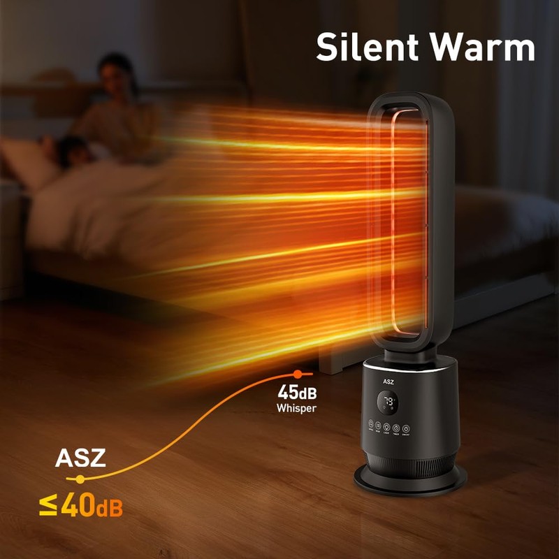 ASZ Tower Space Heater Bladeless with Thermostat- Oscillating Digital Ceramic Heaters for Indoor Home with Adjustable Thermostat, Timer and Remote Control, 32 Inches, 1500W (Black)
