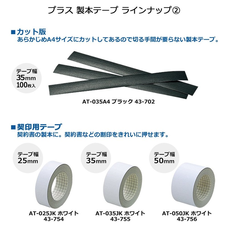 プラス 製本テープ 紙クロステープ AT-035JC 白 35mm×12m 43-738