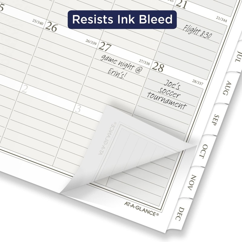 - INK BLEED RESISTANCE – Plan your schedule without fear of distracting ink bleeding. Our improved, high-quality paper is designed for superior ink bleed resistance, which keeps plans neat and legible.