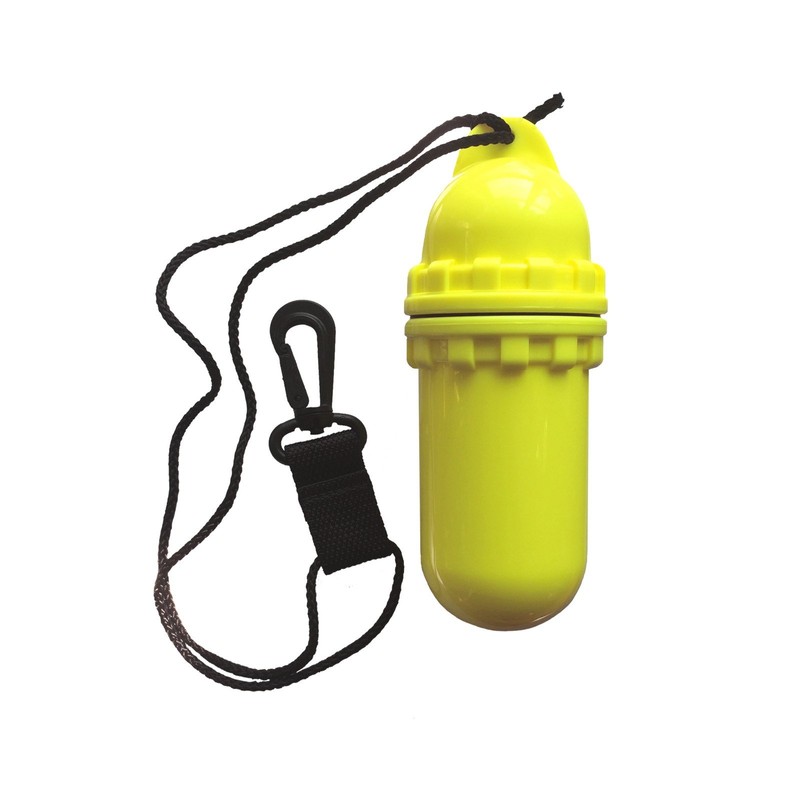 An oblong pressure and waterproof, screw-down O-ring sealed storage container for valuables such as: keys, money and similar. The perfect companion for diving or snorkelling. With the included cord, the dry box can be comfortably placed around the neck or attached to the wrist.