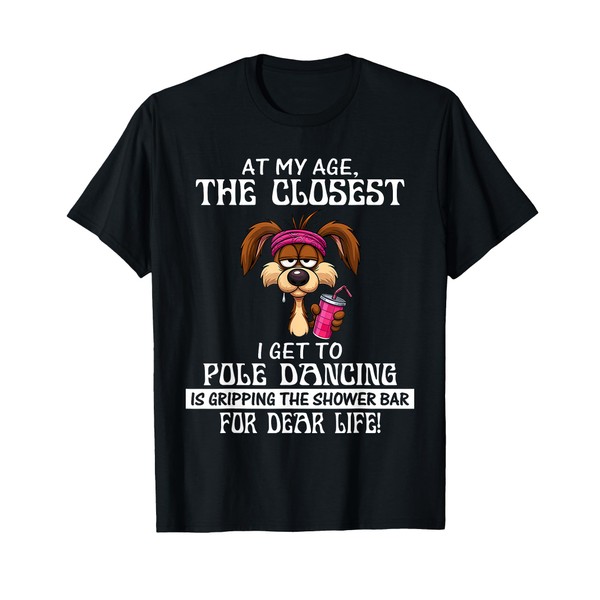 - At My Age The Closest I Get To Pole Dancing Is Gripping The Shower Bar For Dear Life T-shirt for those who love sharing funny saying or quote or just making a small laugh to those around use this unique tee shirt to express your attitude in COOL.