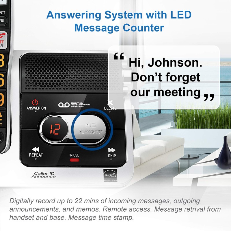 - [SMART CALL BLOCKER & CALLER ID ANNOUNCE] Say goodbye to unwanted calls. Robocalls on your landline are automatically blocked from ever ringing through - even the first time. You can also permanently blacklist any number you want with one touch on the delicated key on the handset. The call block directory can store up to 1,000 name and number entries. Plus, the handset announces the name of the caller, so you can decide on answer the call or block it - screening call is never easier.