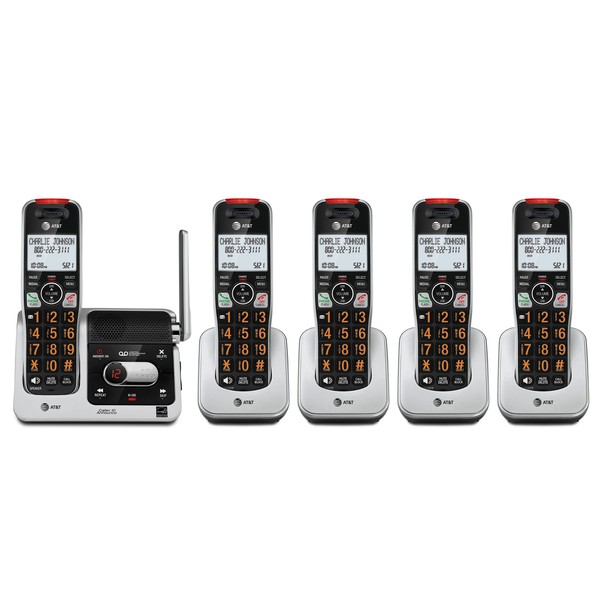 AT&T BL102-5 DECT 6.0 5-Handset Cordless Phone for Home with Answering Machine, Call Blocking, Caller ID Announcer, Audio Assist, Intercom, and Unsurpassed Range, Silver/Black