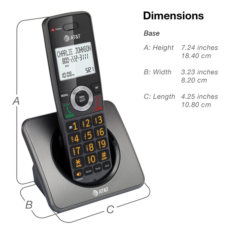- 2" white backlit display - High-contrast text on the extra-large 2" screen makes it easy to read incoming caller ID or call history records. Plus, the orange back lighted handset keypad allows for easy dialing in low-light conditions.