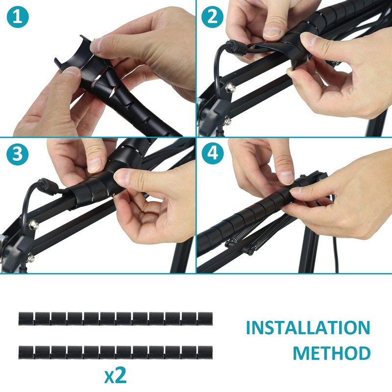 - Wire hider: Wrap the cable management sleeves around your cords and within a few seconds you can enjoy a tidy and lovable living/working environment.