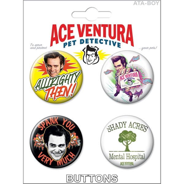 Ata-Boy Ace Ventura Set of Four 1.25 Inch Collectible Buttons