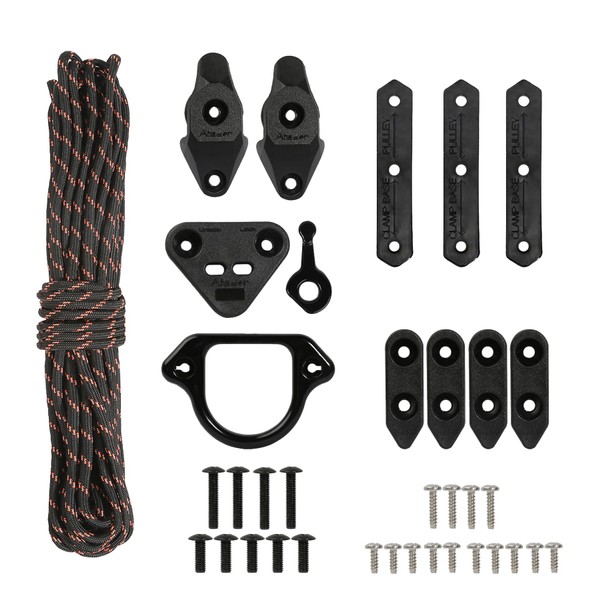 - QUIET KAYAK ACCESSORIES FOR FISHING: High-quality pulleys pull the line smoothly and quietly. The Pad hook keeps trolley lines in place on the side of kayak, not over your gunwale. without interfering or tangling in the kayak. The creative clamp base can lock the rope by toggling, saying goodbye to zigzag cleats
