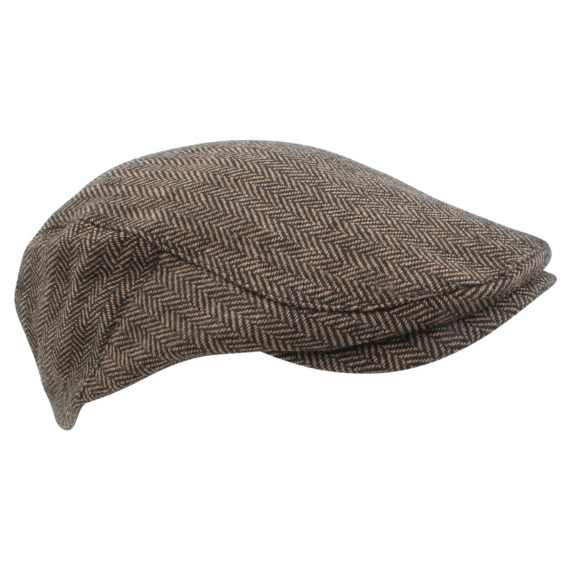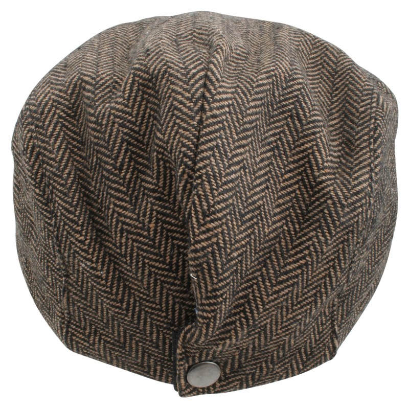Atano Mens Adjustable Herringbone Flat Cap Brown Mix