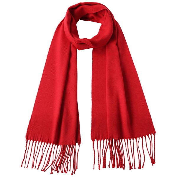 Atano Mens Fine Soft Scarf with Tassel Ends Red