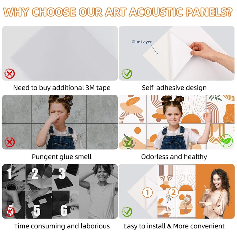 - MATERIAL SAFETY & WIDELY USED: 100% high-quality polyester fiber material. Our panels are non-toxic, odorless, flame retardant, fade resistant, impact resistant, breathing, and touching are both safe and can be widely used in bedrooms, living rooms, recording rooms, offices, rehearsal rooms, etc