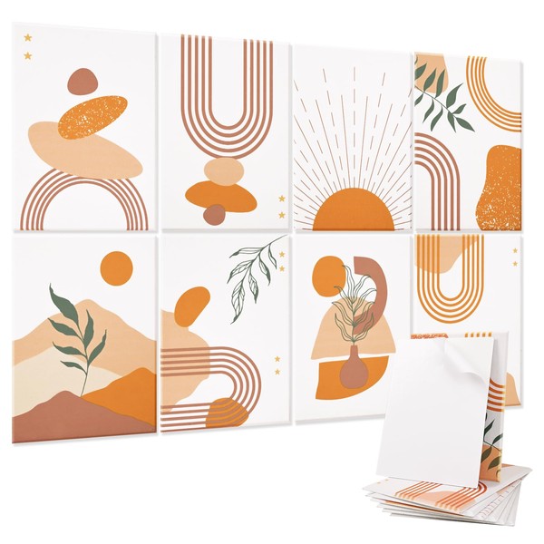 - PACKAGE INCLUDES: You will receive 8 Pcs of Bohemian-style sound-absorbing wall panels. 48"X32" (a single panel size is 15.7"X11.8"), with perfect integration of elements such as lines, leaves, stones, mountain silhouettes, and the sun. The design is rich, combining sound-absorbing noise reduction and wall decoration to add color and design highlights to your space.