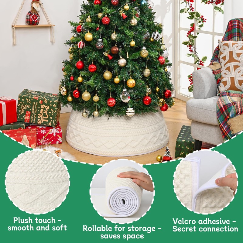 - Outstanding Quality: Made of knitted cotton thread, hand-stitched, it's tight in texture and lightweight. The Velcro is designed at the connection points, perfectly concealing the opening. Two threaded tubes are provided to ensure sufficient support for the christmas tree rings