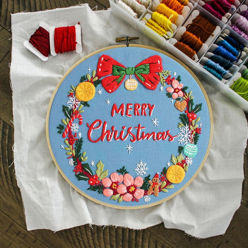 ATBEAMEN Christmas Embroidery Kit-Merry Christmas Design for Kids and Adults Embroidery kit for Beginners with Embroidery Thread,DIY Christmas Fabric Crafts Starter Cross Stitch Craft Kit Gifts Decor