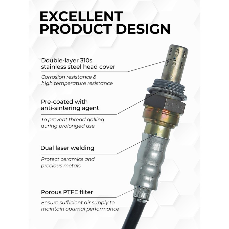 - 【Product Features】The oxygen sensor features high-quality ceramic components and precious metal-coated electrodes, delivering precise and rapid oxygen concentration detection. The housing is made of high-temperature-resistant 310S stainless steel, offering excellent corrosion resistance and durability. Pre-applied anti-seize coating on the threads allows for direct installation.