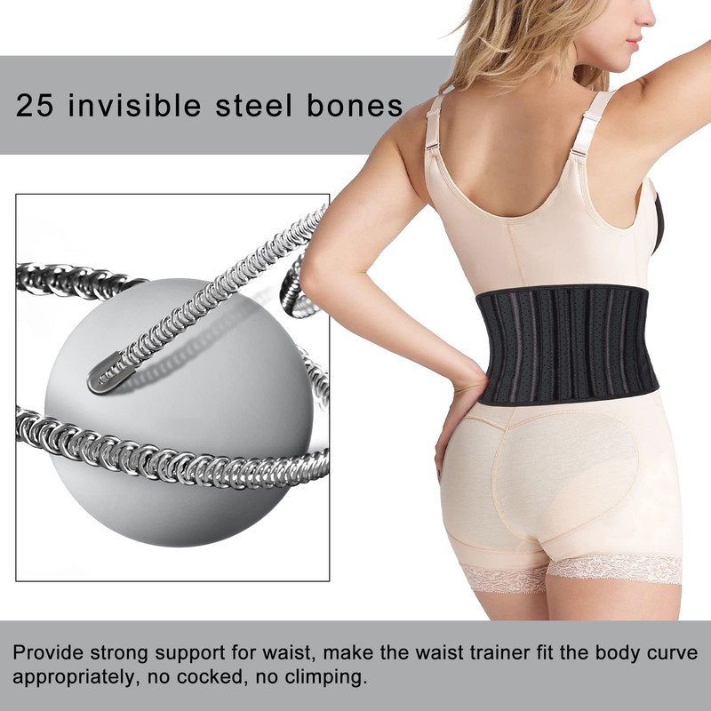 - KEEP CORRECT BODY POSTURE: The spiral steel bones of the tummy trainers are covered in front and back for offering support, smooth waist line, and make your waist stiffness and keep your straight and prevent slouching. And the waist shaper also can protect back and reduce back pain.