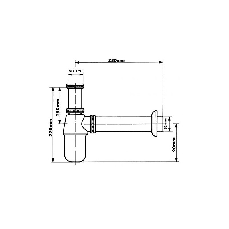 Bottle odour trap PLUS 1 1/4 inch gold (colour: polished brass).