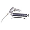 Automatic operation with continuous grease discharge with the trigger pressed. Ideal for use in factory maintenance, agricultural applications, fleet service or for use on trucks connected to vehicle air brake compressors. Heavy-duty aluminum die cast head with internal bore precision honed for rapid action. Head fitted with bulk loader valve. Ergonomic pistol grip and acute angle design allows for ease of operation, especially in narrow spaces. Air Operating Range: 40 to 120 psi. Pressure Ratio: 40: 1. Air Compressor Volume: 1 CFM/0.026 cubic meter and above. Each gun is supplied with a male quick coupler fitting. Air Inlet Thread 1/4" NPT. Multiple Loading: 14 ounce Cartridge/Suction/Filler Pump. Complete with 12" flexible hose, 6" steel extension fitted with professional 4-jaw coupler. Warning: Air supply must be totally dry and ALWAYS use lubricator unit.