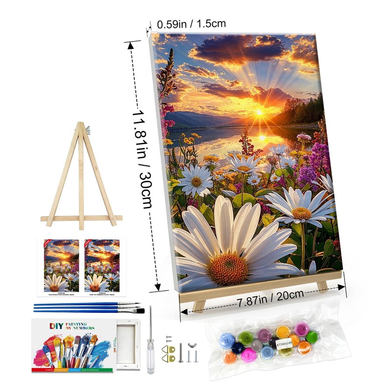 ATDMS Paint by Numbers Kit for Adults with Frame Landscape Paint by Number with Easel DIY Flowers Adult Paint by Number Kits Sunset Paint by Numbers Kit on Canvas for Gift Home Wall Decor 8x12 Inch
