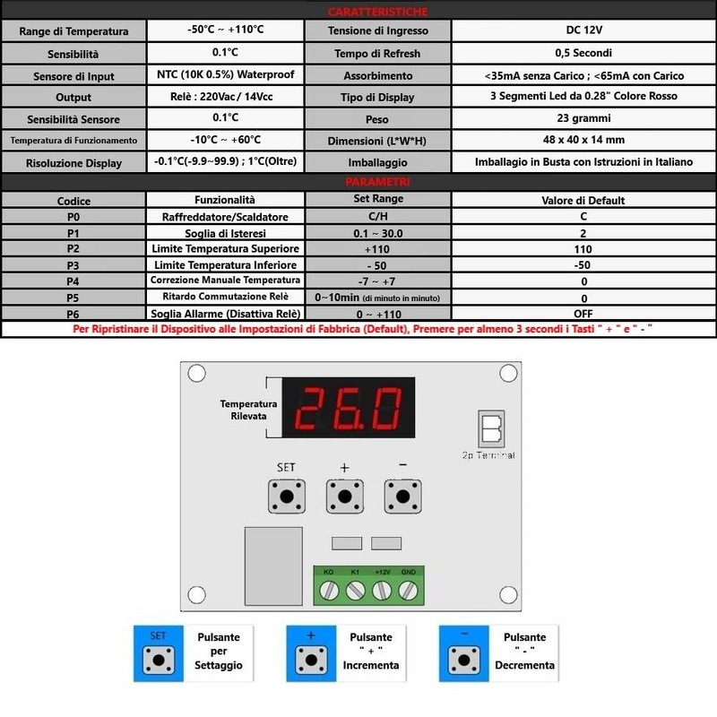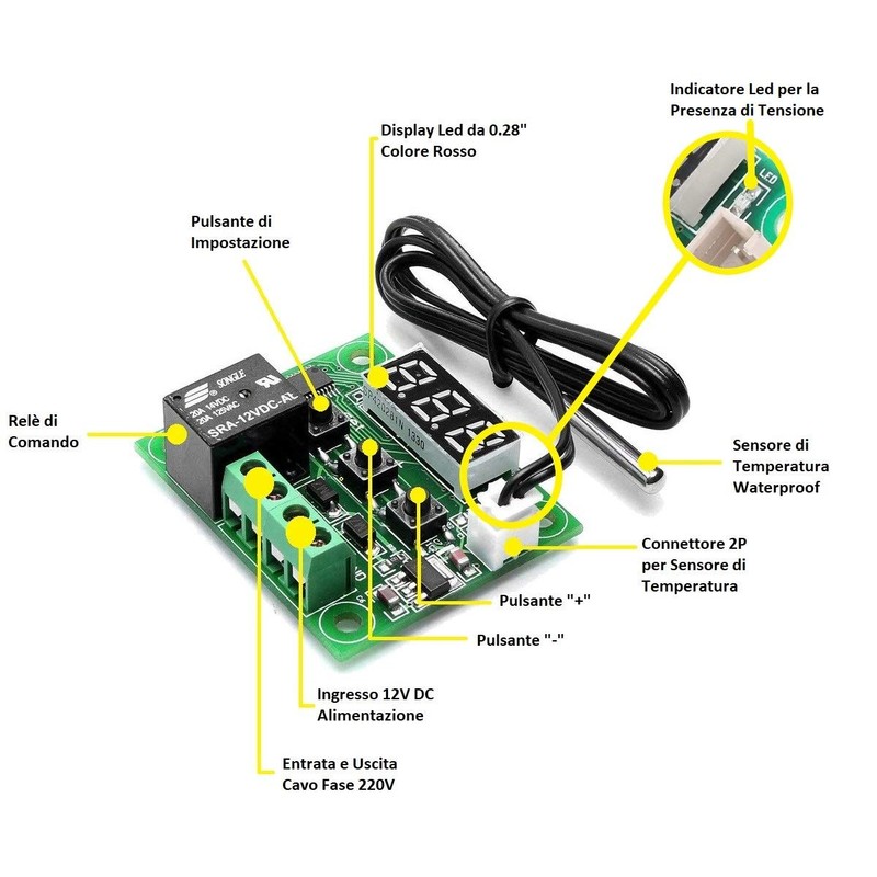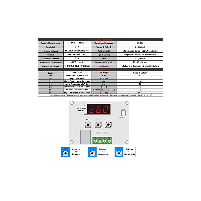 - * The ATEC module XH-W1209 is very intuitive and easy to program, thanks to the instructions in Italian supplied with the module. *