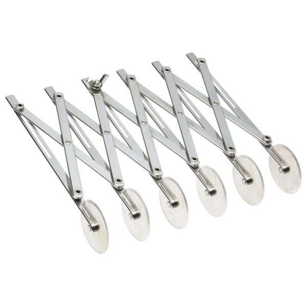 Save time, be accurate and consistent with ATECO's 6-Wheel Stainless Steel Expandable Pastry Cutter. It's perfect for cutting brownies, cookies, cake and pastry or pasta dough. It has six wheels; each wheel is 2 1/8-inches in diameter. Stainless steel construction means that this cutter will give you years of reliable use. Features a locking device to ensure even cuts and uniform portions. To use, loosen wing nut and adjust outer rods until the wheels are at a desired spacing. Then tighten wing nut. Opens to 4 7/8-inches between wheels. Hand washing is recommended. By ATECO. Since 1905, ATECO has supplied fine restaurants and bakeries with quality built, specialty baking tools. ATECO products are internationally renowned for their high quality. When you use ATECO products, you’re not only enjoying quality craftsmanship, you’re also enjoying quality design; the products are a result of over one hundred years and four generations of innovation and development.