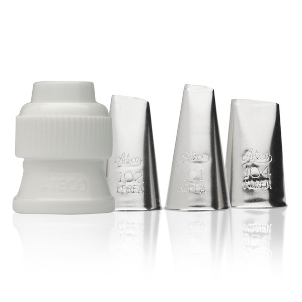 Ateco Piping Tips (Stainless Steel) Bundle of 3 + Replacement Cap/Rose