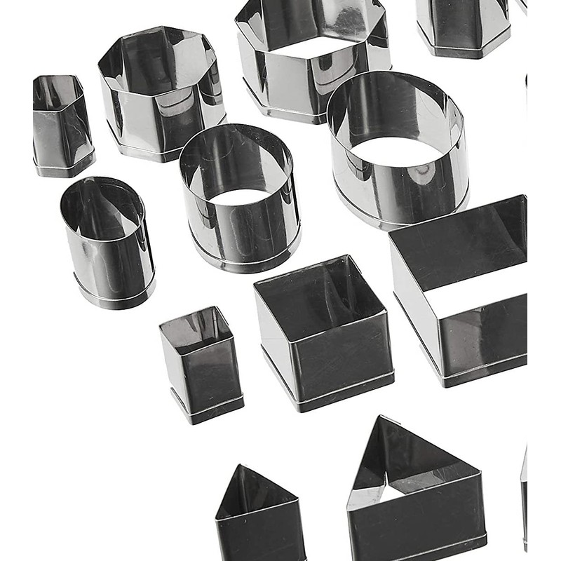 - Professional quality set of 24 geometric shape pastry cutters