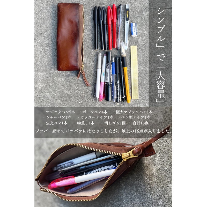 - The material is carefully chosen and the main body is made of leather (Tochigi leather), and the lining is made of canvas and the metal fittings are made with brass universal zippers, so you can enjoy the change of age over time. Use it for a long time and grow it in an atmosphere pencil case
