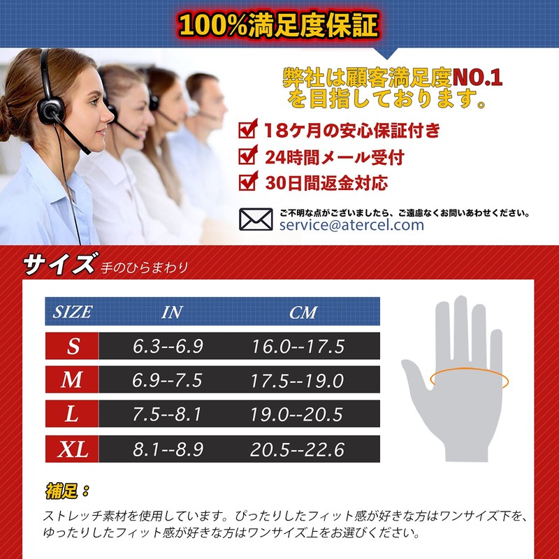 - 100%満足度保証:弊社は顧客満足度No.1を目指しており、ご購入いただいた製品は19ケ月の安心保証付きです。実際に使用してみて、「サイズがちょっと大きかった/小さかった」や、「色が予想と違った」など些細なことでもご対応いたします。ご不明な点がございましたら、お気軽にお問い合わせください。