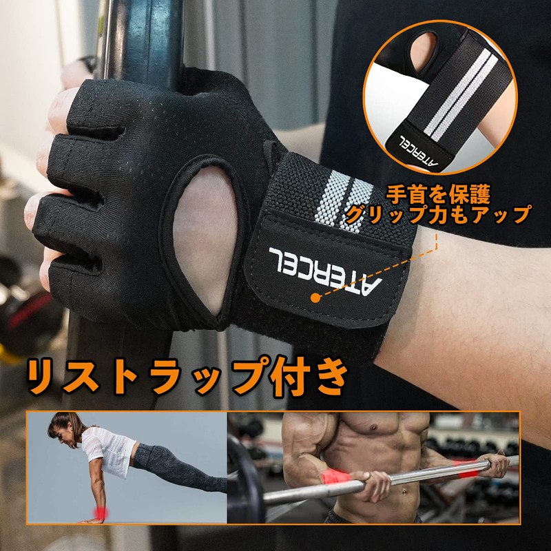 Atercel トレーニンググローブ 筋トレ グローブ スポーツグローブ リストフラップ付 ウェイトトレーニンググローブ 手首固定 滑り止め メンズ レディース