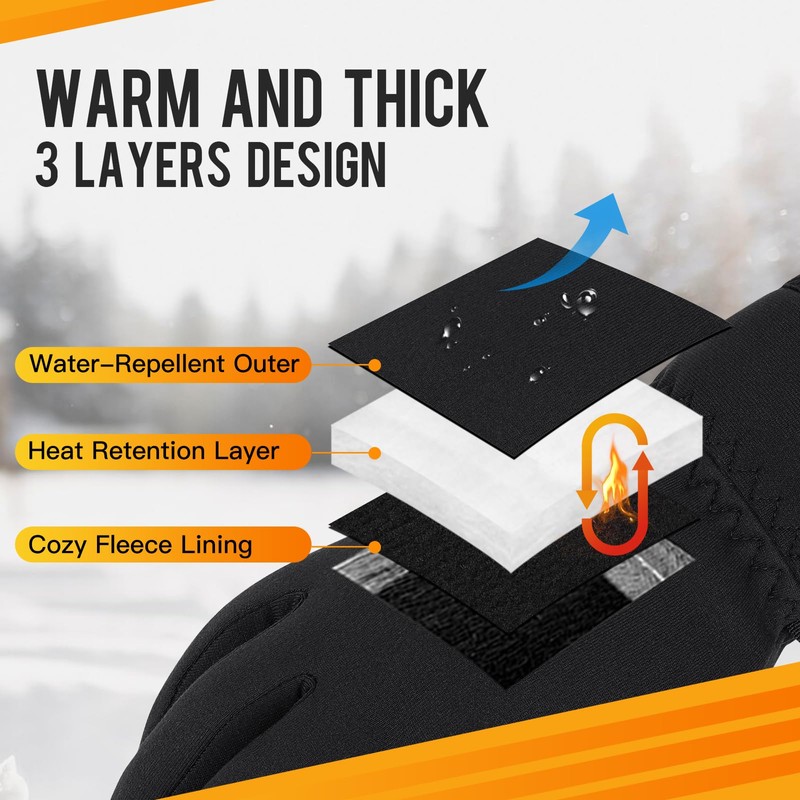 • Weather Protection: Command the elements with absolute confidence with our winter gloves for both men and women. These gloves emerge as a testament to unparalleled weather resilience, fusing a water-repellent fortress with an impervious windproof shield.