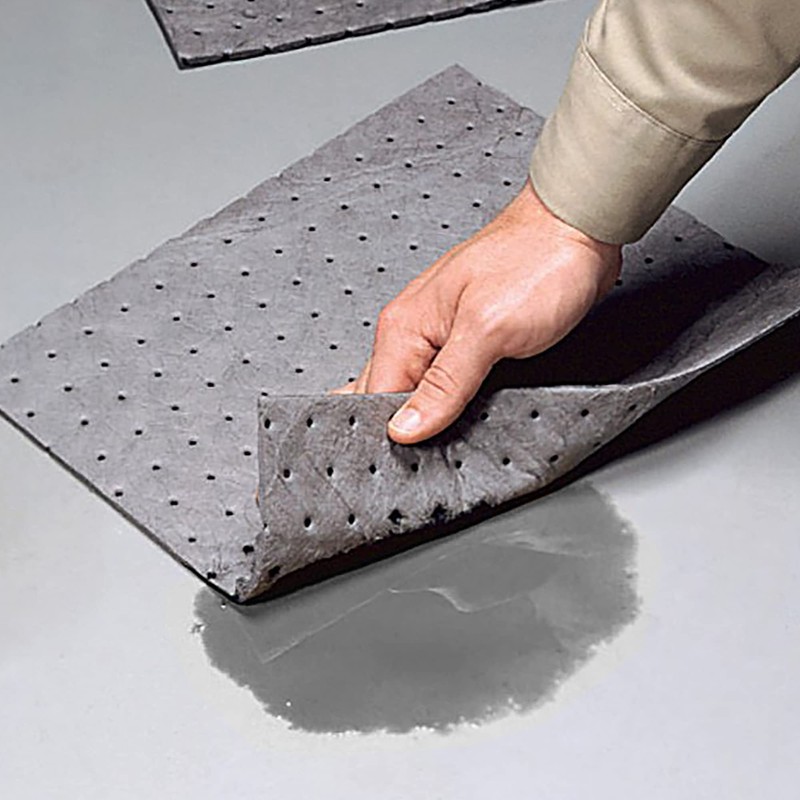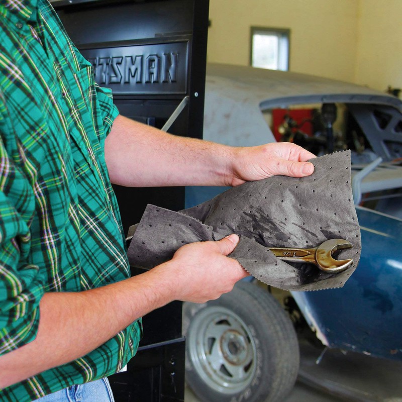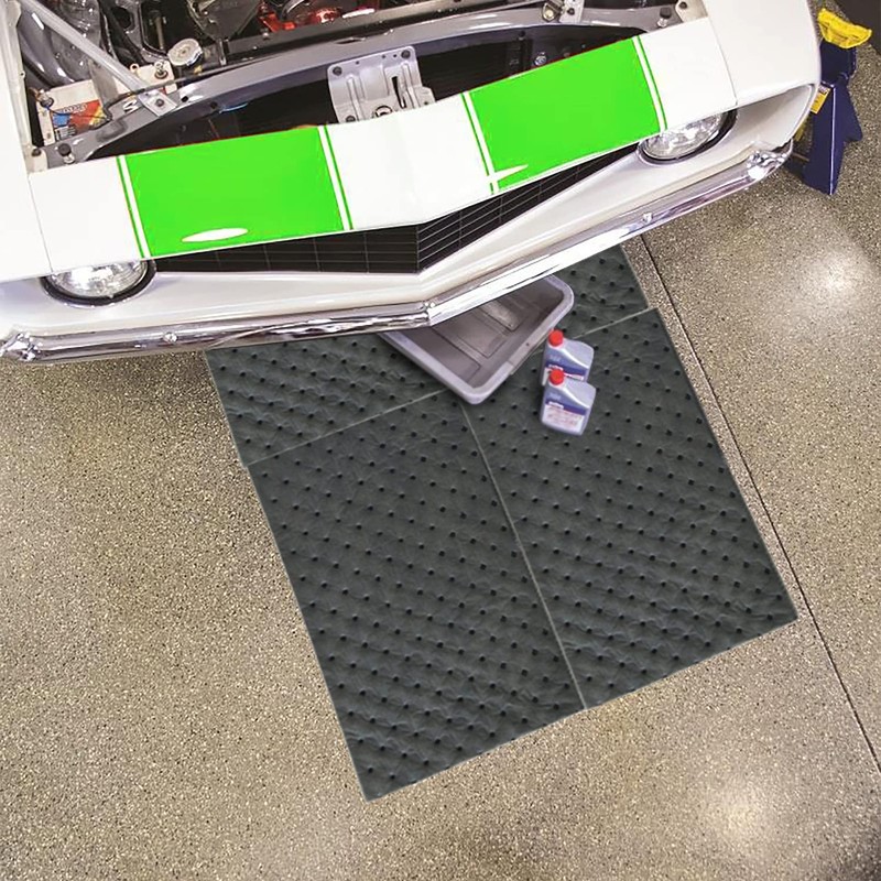 - GOOD ABSORBENT: oil absorbing sheets have a concave surface pattern texture, so the oil mat accelerates the absorption of liquids throughout the carpet for faster, easier cleaning. In particular, the oil absorbent pad absorbs and retains oil and oil-based liquids, including lubricants and fuels, without taking a single drop of water.
