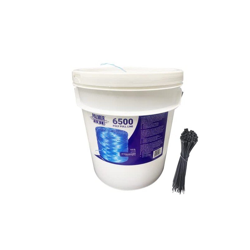 ATERET PL6501 Poly Pull Line Bundle - 210 lbs Tensile Strength, Polypropylene Twine Line - 6,500 Ft in Bucket & Reusable Lid w/ 100 Black Zip Cable Tie