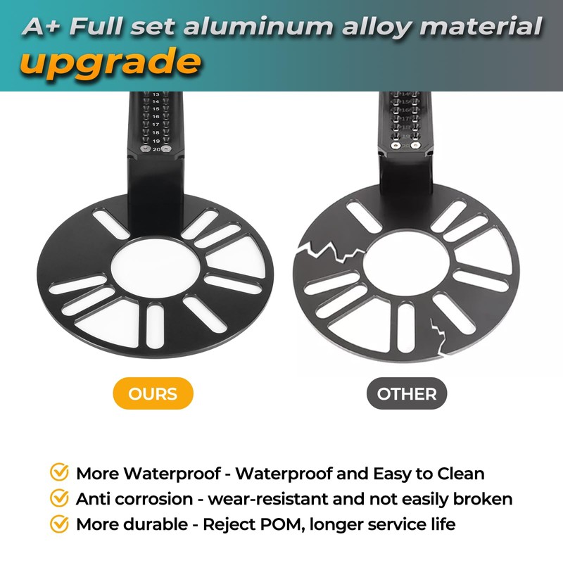 - Upgraded Material:Compared to other POM plastic circular bases wheel fitment tool,our wheel fitment tool have been upgraded and all the tool components adopted with aluminum alloy materials,which it is more sturdy, rust proof and heat-resistant,but it won't be bulky, it is easy to carry and service a longer life