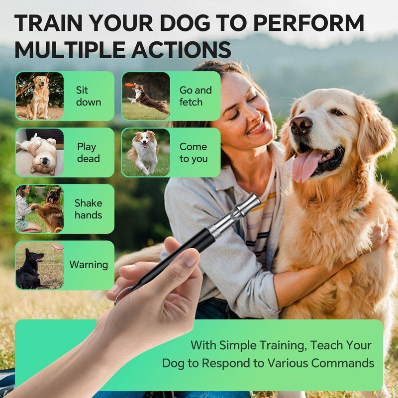 - 【Stop Dog Barking】When your dog or a neighbor's dog is barking continuously, gently blow the dog whistle. The ultrasonic frequency emitted by the dog training whistle easily captures the dog's attention and helps stop the barking