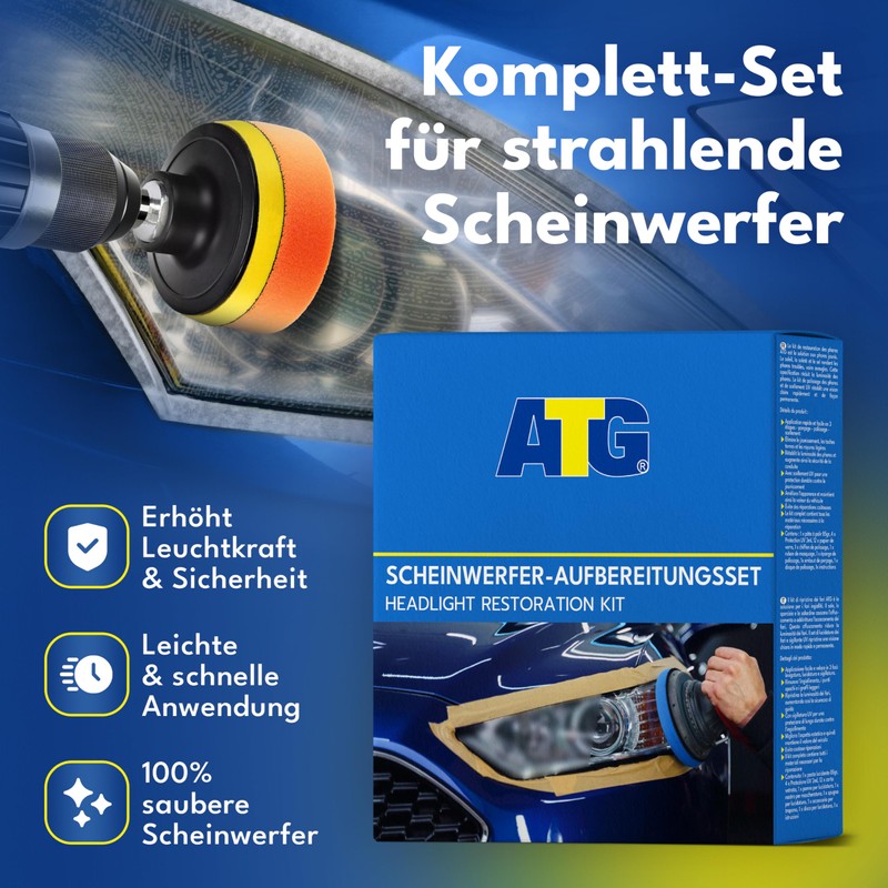 - For all vehicles: the ATG headlight preparation kit can be used for any vehicle. Headlights from trucks, caravans and car headlights are like new again with our headlight polishing compound.