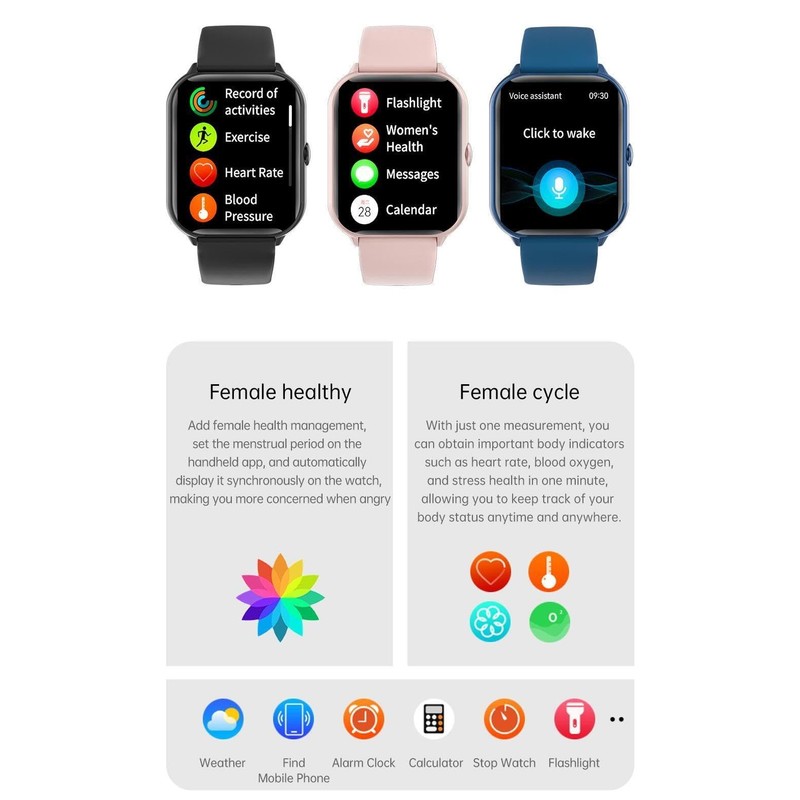 - ▶Multi-functional health monitoring: All-round health escort, including heart rate, sleep, blood oxygen, women's health, blood pressure and other monitoring functions, always pay attention to your physical condition.
