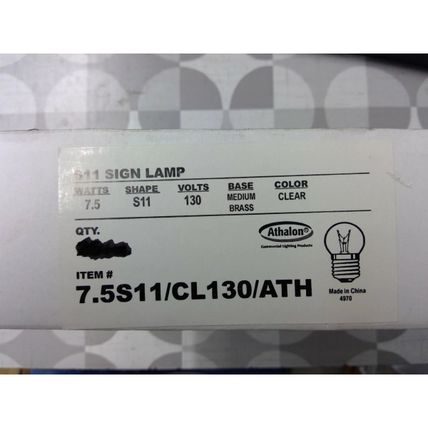 Athalon 7.5S11/CL130/ATH 7.5W S11 Sign Lamp, Clear **Free Shipping**