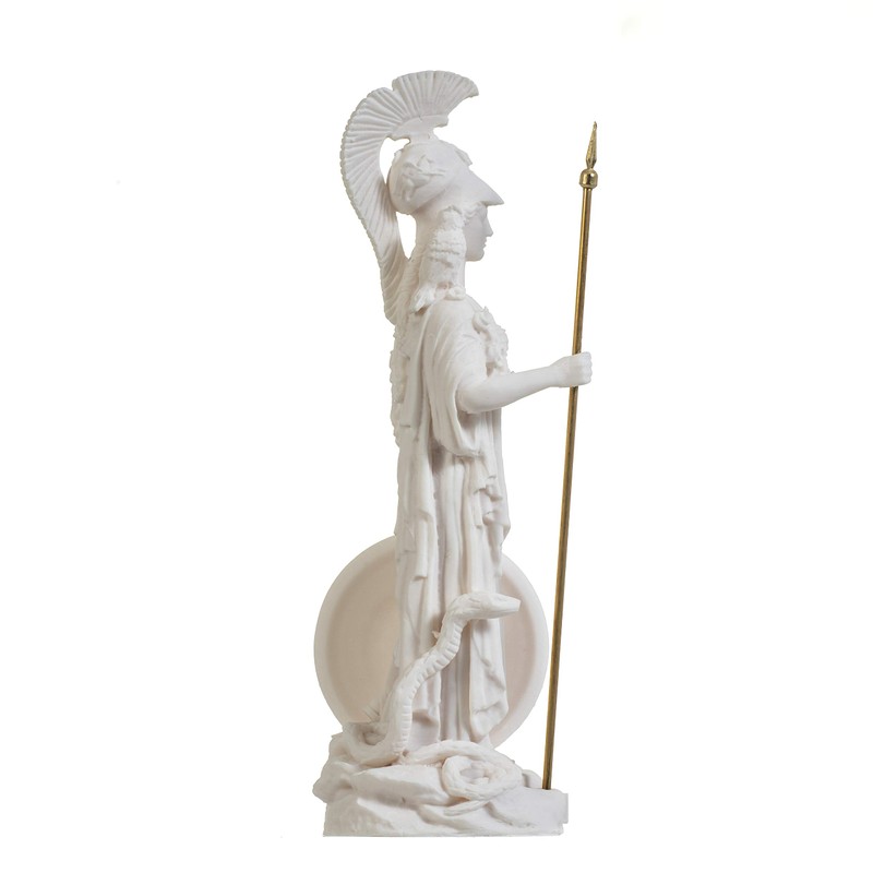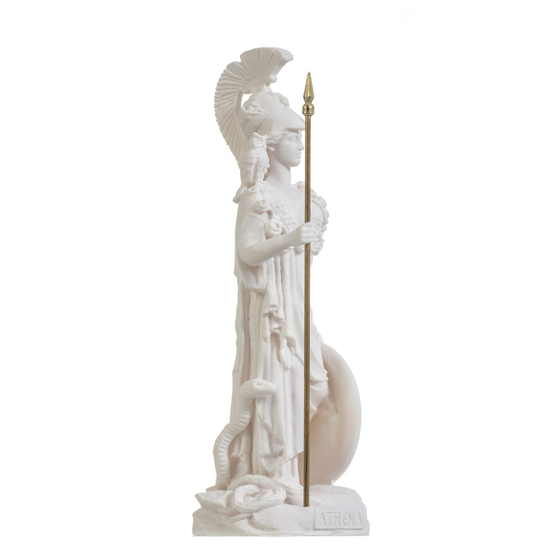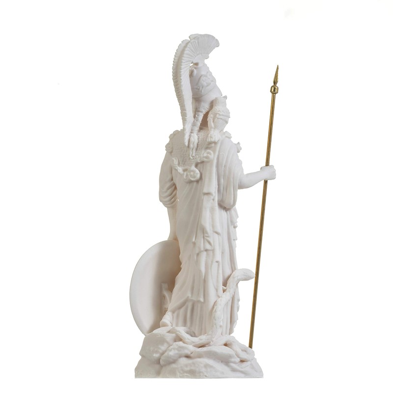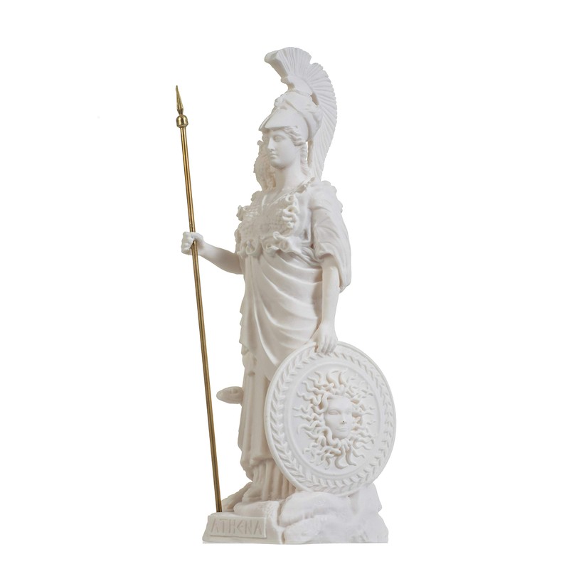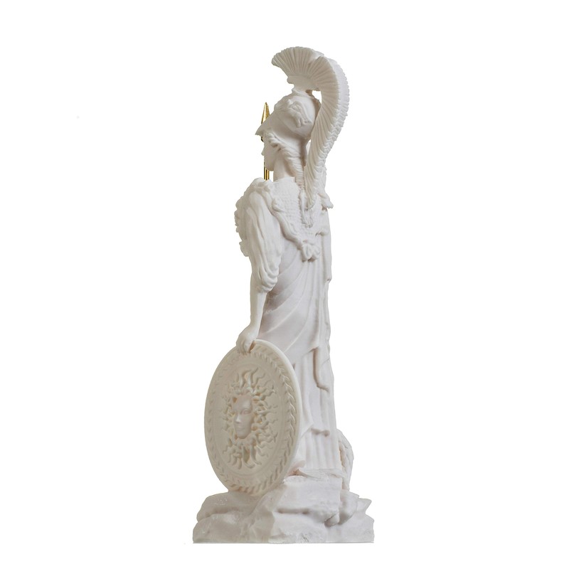 Athena With Owl Medusa Shield Greek Goddess Alabaster Statue 10.6"