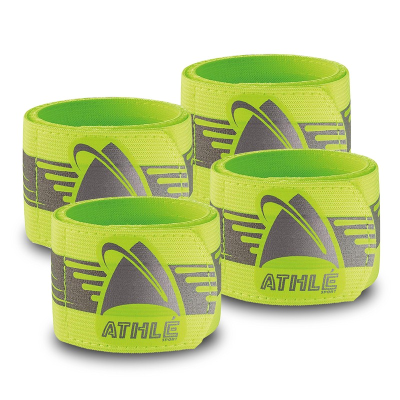 Athlé Reflective Bands 4 Pack – Adjustable 16" Neon Yellow Straps for Wrist, Arm and Ankle - High Visibility Safety Gear for Running, Jogging, Cycling and Biking