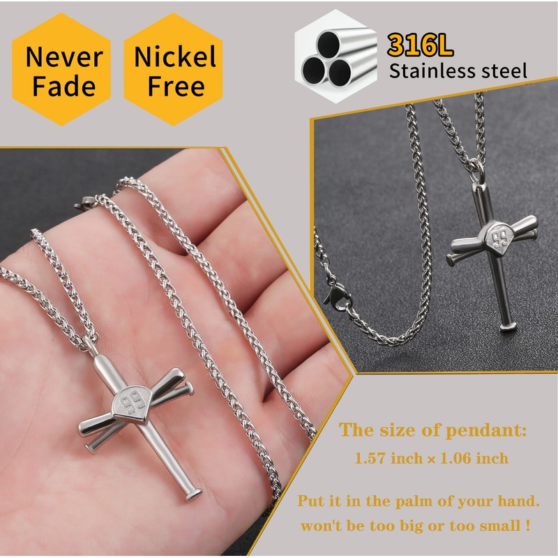 - ⚾【Baseball Necklace for men】✞. Environmental protecting stainless steel is used as the base to impart solidity and sturdiness to both pieces. The mens necklace cross& cross bat necklace for boys engraved Arabic numerals in the stainless steel cross necklace is unique & perfect gift for Christian to pray who love sports.--engraved baseball cross Necklace. An inspirational Bible verse from PHILIPPIANS 4:13 on the back. "I CAN DO ALL THINGS";so,This mens Baseball cross Necklace is worthwhile
