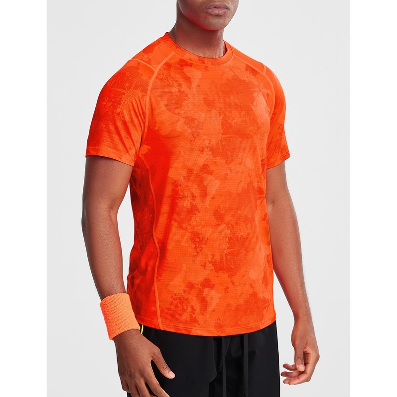 Athletic Shirts for Men Dry Fit Moisture Wicking Short Sleeve Lightweight(Neon Orange,Medium)