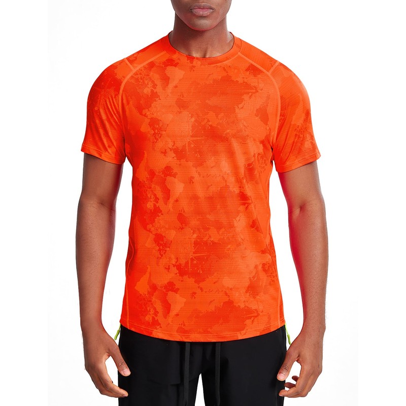 Athletic Shirts for Men Dry Fit Moisture Wicking Short Sleeve Lightweight(Neon Orange,Medium)