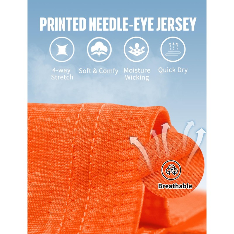 - **Lightweight sports jersey printed. Ultra-soft, smooth and stretchy, breathable, anti-wrinkle. Machine washable in cold water.