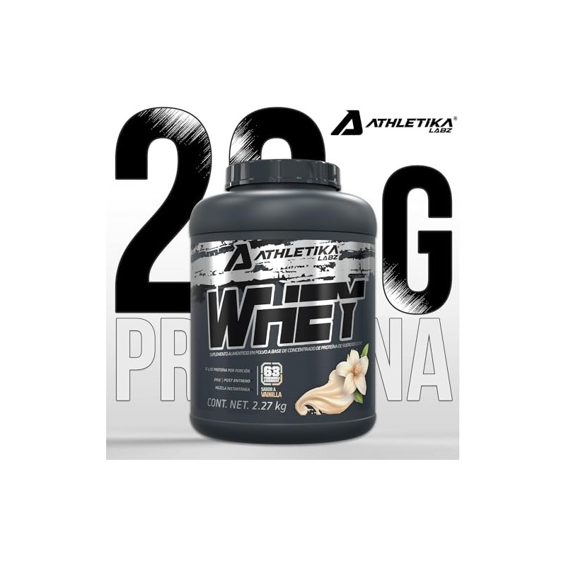 Athletika Labz  Protena Whey  22 g de Protena  63 Servicios  Sabor Vainilla  Post Entrenamiento  Perfil Completo de Aminocidos  5lb (2,27kg)