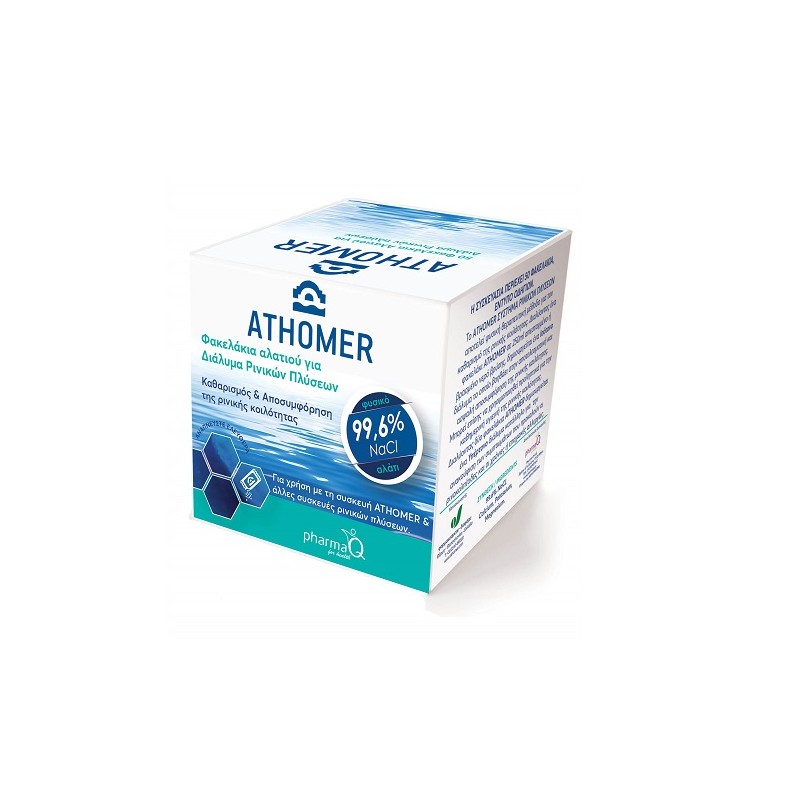 Dissolve one or two sachets of ATHOMER in 250ml water in the appliance provided. The correct application is made by pouring the saline water from one nostril and its outflow from the other.