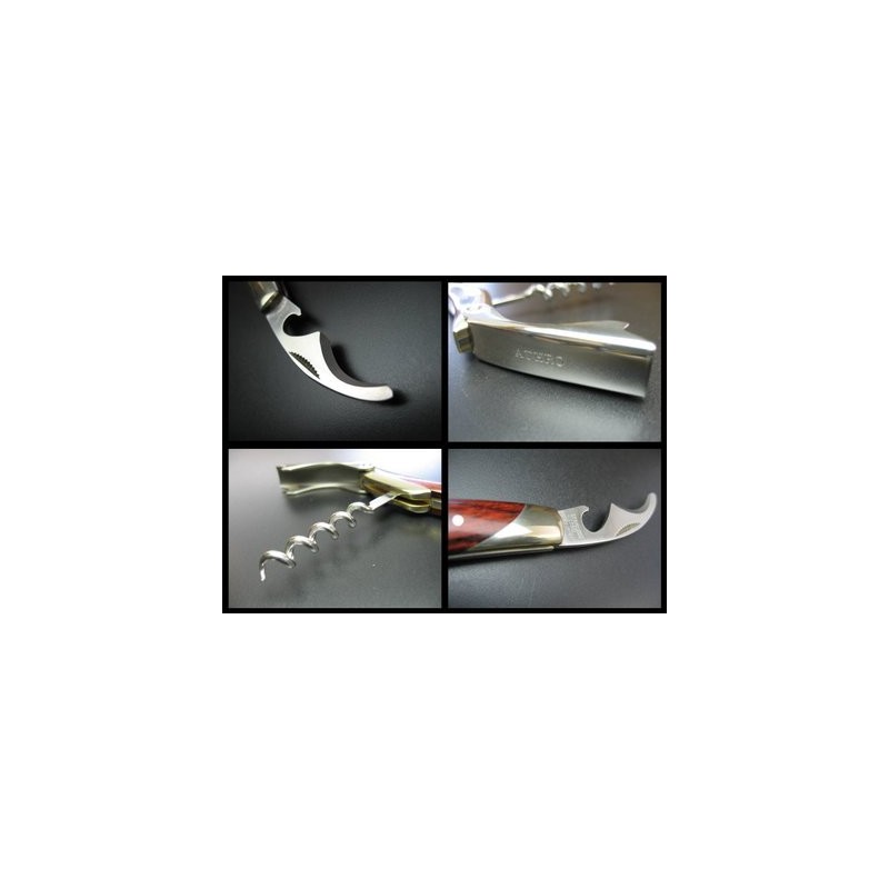 - The part of the blade is serrated (serrated blade) that makes it easier to cut cap seals on the bottle. Also, the parts that do not have a blade can be used as a bottle opener, so you can use one sommelier knife in three ways