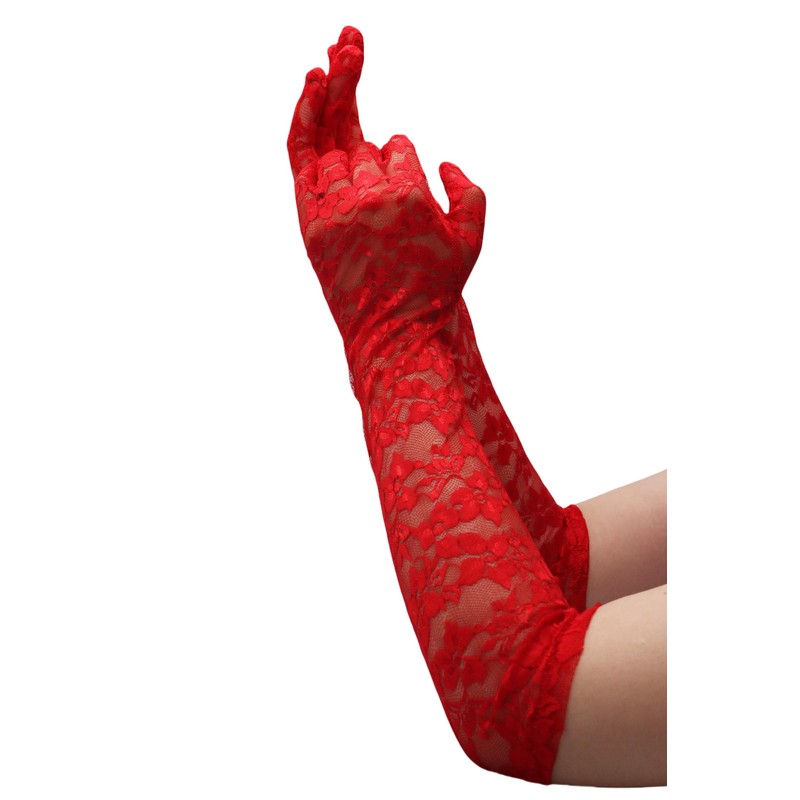 ATHX Lace Opera Tea Party Gloves for Women 19" Length Elegant Floral Bridal Wedding Prom Long Gloves Costume Accessories (Red, One Size)