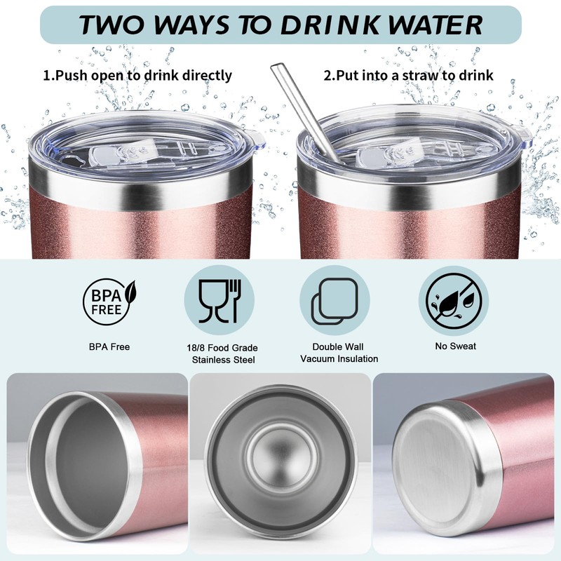 - đă20 oz Tumbler with Straw and LidăThe tumbler includes a BPA-free lid that slides to prevent spills; furthermore, we provide a stainless steel straw along with a straw brush for dual drinking options that enhance usability and ease of cleaning.