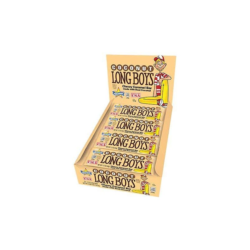 - Now, Atkinson makes these soft, creamy, chewy caramels with flakes of real coconut in a candy bar size for the really serious Long Boy lover.